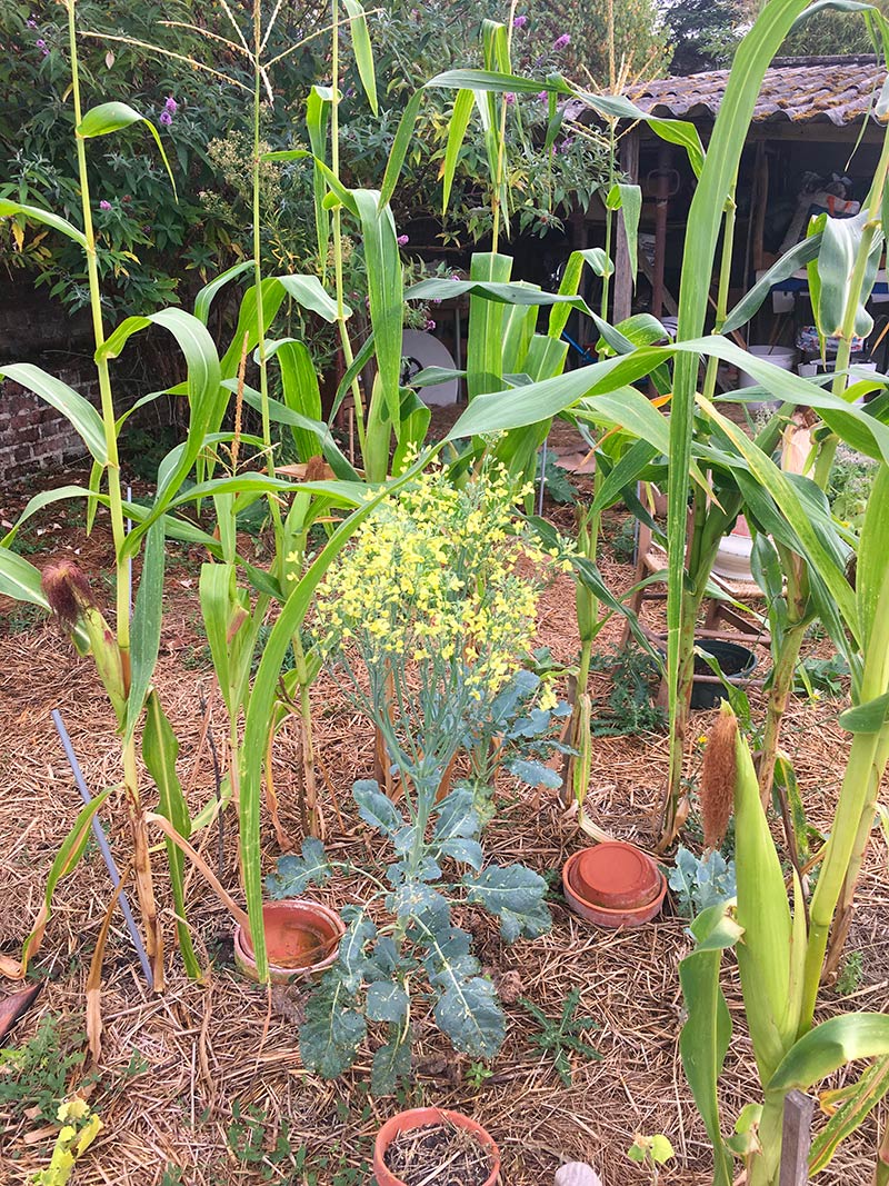 On y trouve aussi des fleurs mellifères et comestibles, des aromates, des petits fruitiers, un composteur...